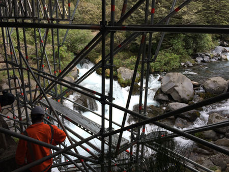 Structural design and inspection of a temporary scaffolding system over a fast-flowing stream to support SH1 bridge upgrade works.